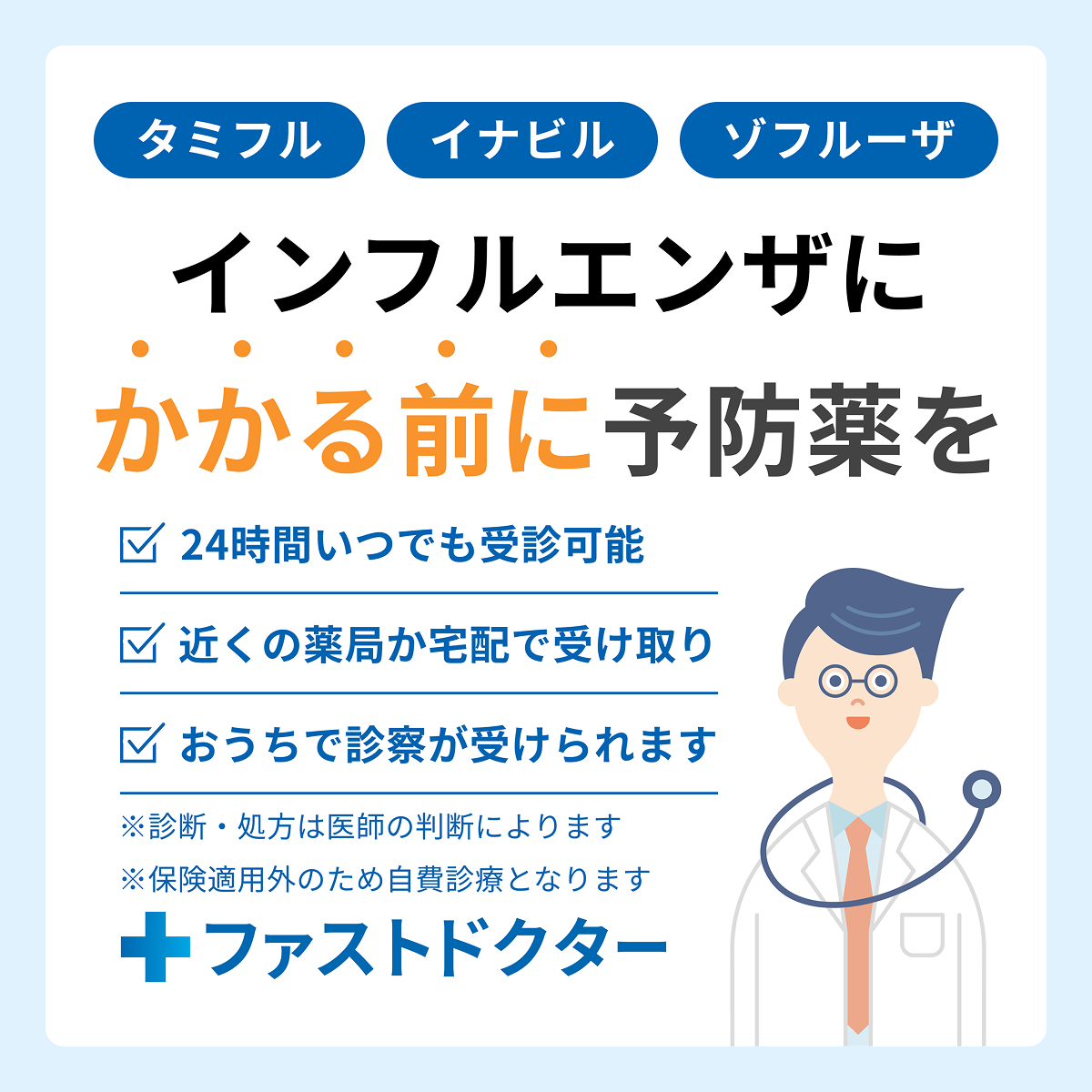 また、タミフルの予防投与は自費診療のため注意しましょう。