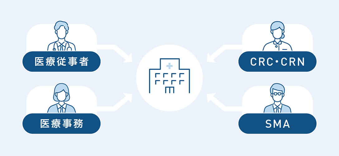 被験者はいるものの、日常診療が多忙で臨床試験・治験を十分に運用できない施設に対して、HR支援を行い、リソース不足を解消します。また、治験のプロトコルに応じて、ハンズオンでのエデュケーション支援を行い、試験実施が可能な体制構築を支援いたします。