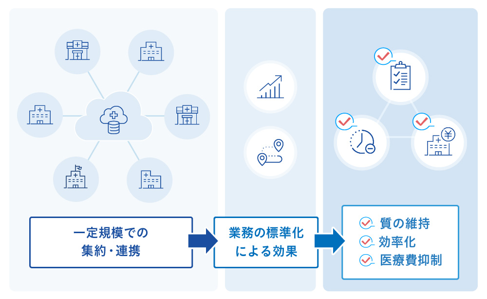 欧州を中心に、診療所を一定規模で集約・連携と業務の標準化によってプライマリ・ケアの質を保ちつつ効率化と医療費の抑制を実現が進んでいます。一方、日本では多くの診療所は分散した個別的な経営が慣習となっており、運営や業務が属人的になりやすい構造にあります。その結果、診療以外の業務負担が医師や限られたスタッフに集中し、経営や人材育成に十分な余力を持てない診療所も少なくありません。こうした状況は、承継や体制強化を難しくし、診療所の持続性を損なう要因となっています。